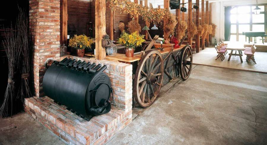 Постепенная модернизация привела к тому, что такие конструкции стали выпускать для сауны. Они оснащаются несколькими режимами – подачей сухого горячего воздуха или подачей влажного пара. Многие интересуются, кто производитель таких изделий: им является российская компания Бренеран. Топятся такие установки только дровами или бумагой. Изготовить дымоход для печи булерьян самим реально, ведь такой способ поможет максимально точно соответствовать строению бани.