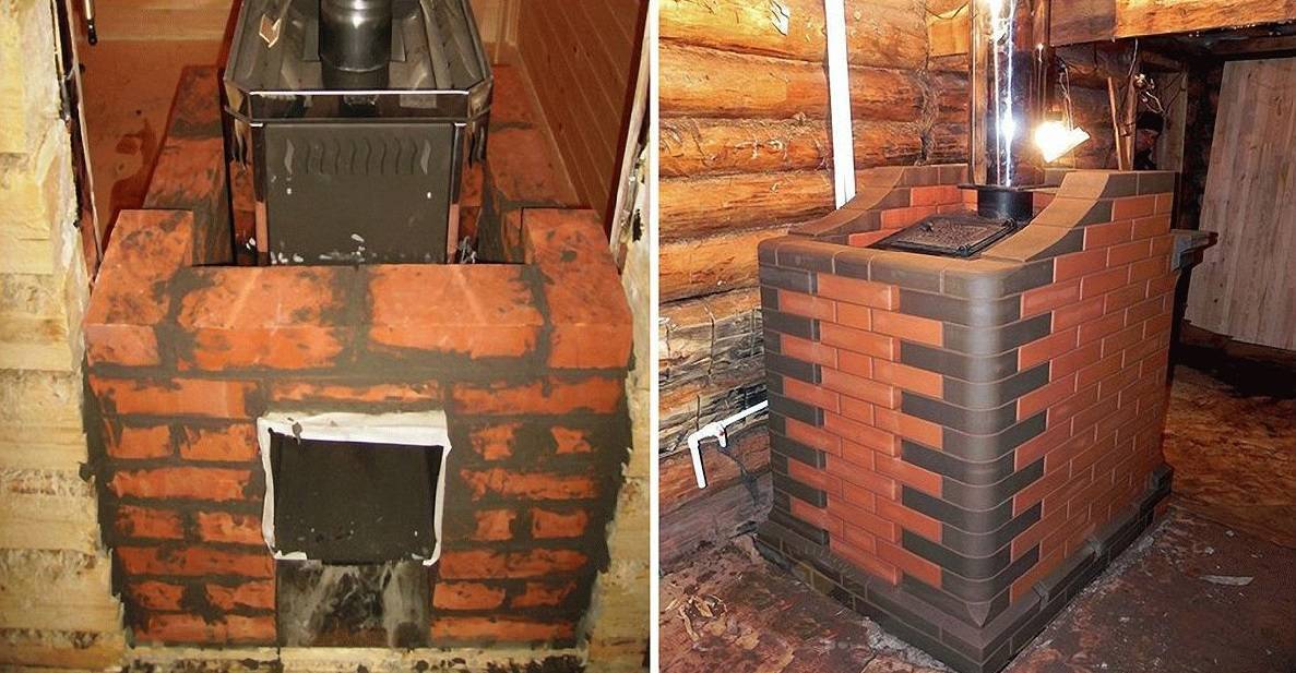 Такой вариант довольно распространён. Единственный его недостаток: в уже существующей бане с металлической печкой без дополнительного фундамента не обойтись.
