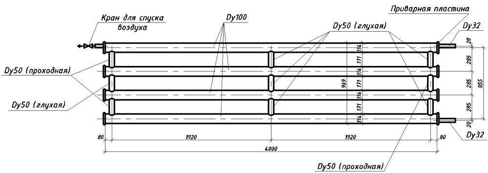 Регистр из гладких труб — чертеж
