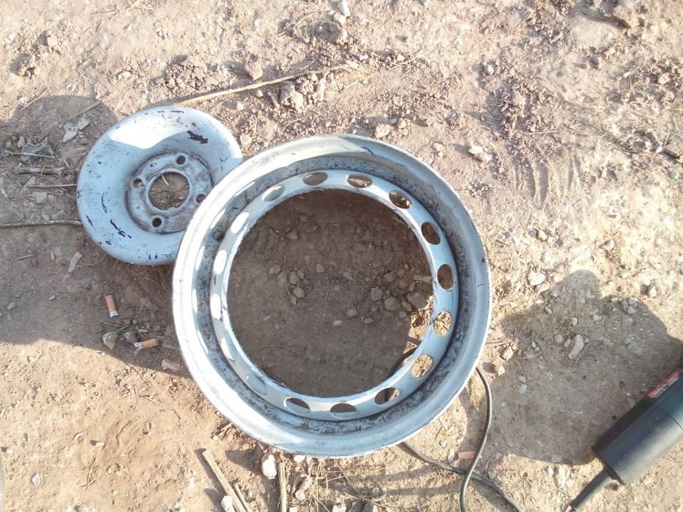 На колесных дисках исправляют все неровности и вмятины – форма должна быть симметричной. Поверхность очищают от ржавчины. Если имеется старая краска, то дисковые исходники прокаливают и зачищают наждачкой. Но самое главное — автодиски должны иметь гладкие ровные края. Это обеспечит плотное соприкосновение окружностей и отсутствие щелей, через которые может проникать дым. Для выравнивания каждый диск шлифуют по кругу.