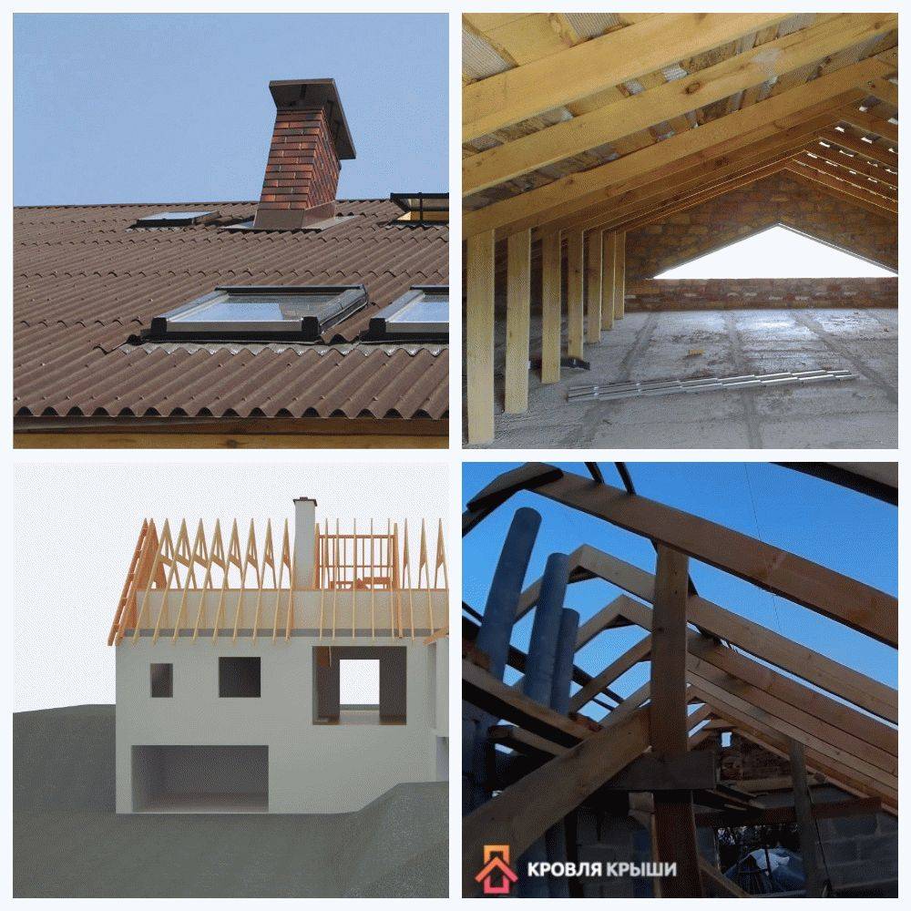 - Возвышение шахты над двухскатной крышей определяется отдалением от конька: