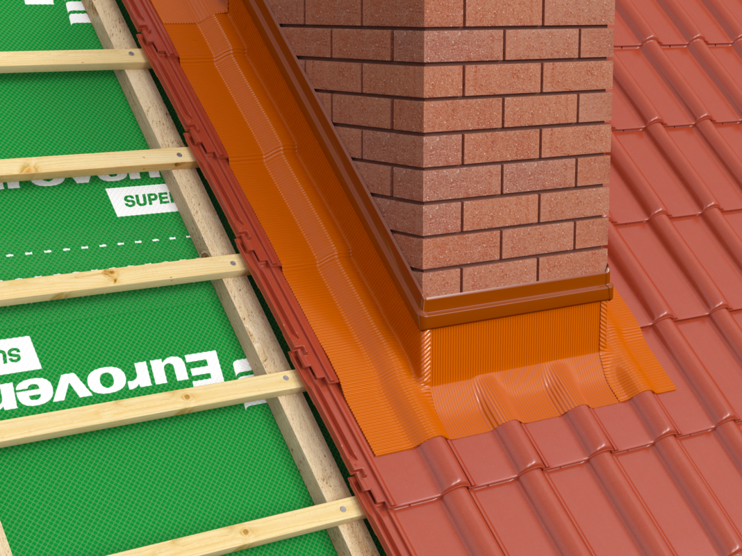 Вакафлекс – клеящаяся эластичная водоизоляционная полоса с внутренним алюминиевым армированием. Ее конструкция позволяет повторить форму кровли и в то же время крепко прилегать к трубной поверхности.