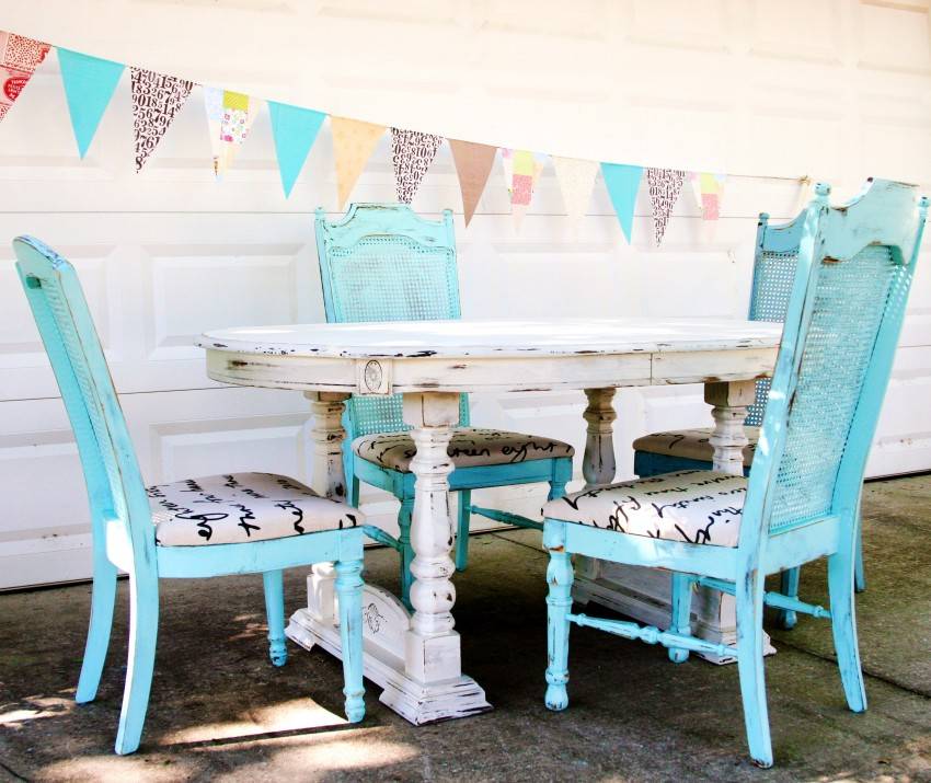 Простой способ для всех, кто умеет держать малярную кисточку. Особенно хорошо подойдут старые модели стульев, которые внесут в интерьер нотку винтажности. Перед покраской хорошо пройдитесь по поверхностям наждачной бумагой и покройте краской в 2 слоя.