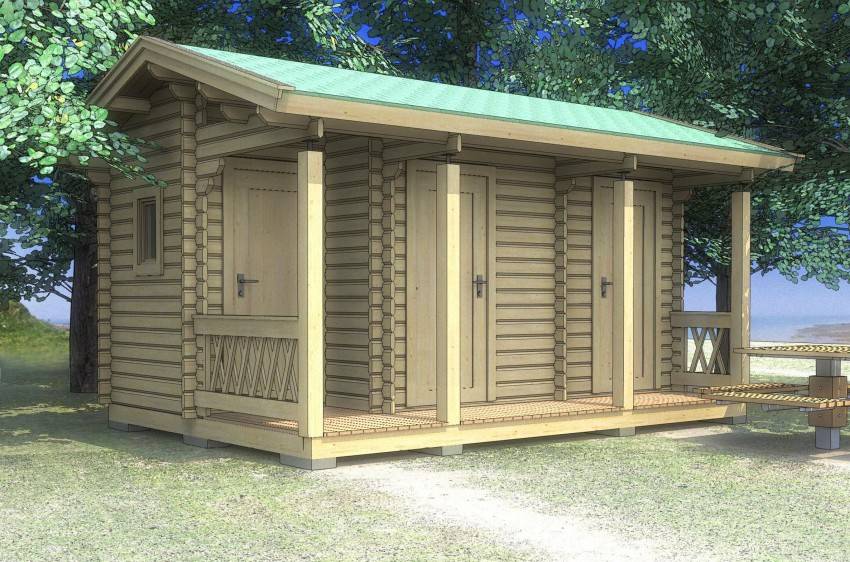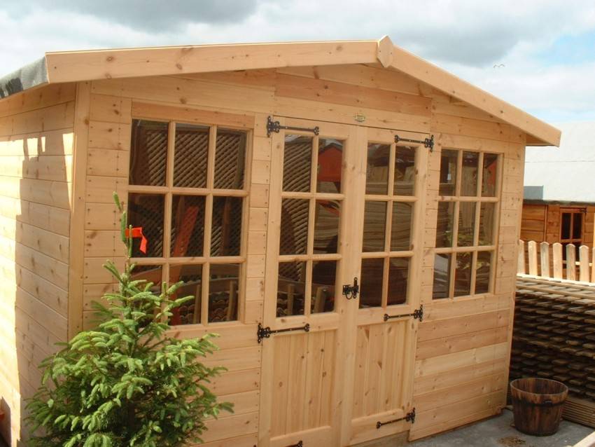 - для стен применяется брус 10х10 или 15х15 см, зависит от величины постройки, для декорирования может использоваться обрешетка, вагонка, иногда строение возводится из оцилиндрованного бруса, реже применяют кирпич;