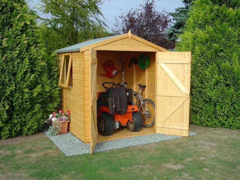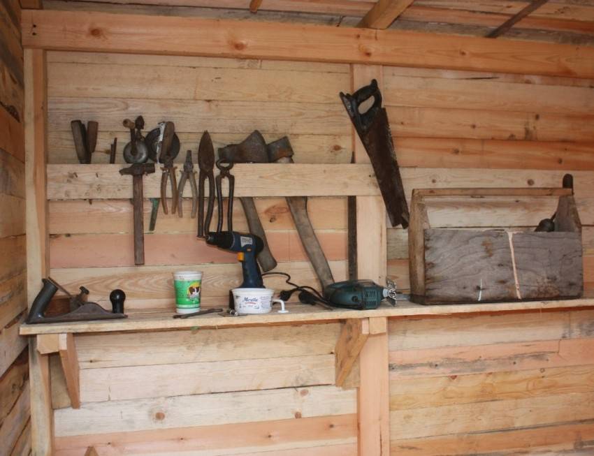 Стоит сразу же позаботиться о внутреннем обустройстве сарая – например, сделать удобные держатели для садового инструмента, организовать полки и прочее.
