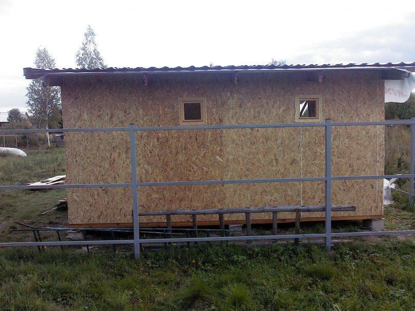 Это почти готовый сарай с двускатной крышей. Осталась отделка стен