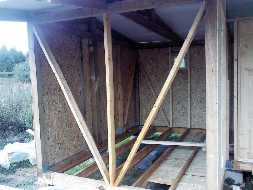 Такие раскосы придадут достаточную жесткость стенам каркасного сарая