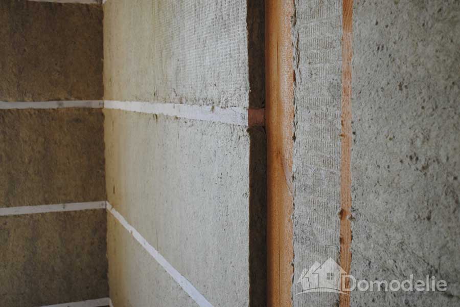 Перекрестное утепление изнутри по растянутой пароизоляции позволяет производить скрытую проводку электрики с монтированием подрозетников и труб отопления без нарушения целостности самой пароизоляции. То есть данные работы проводятся в толще стены по частично не утепленным воздушным каналам.