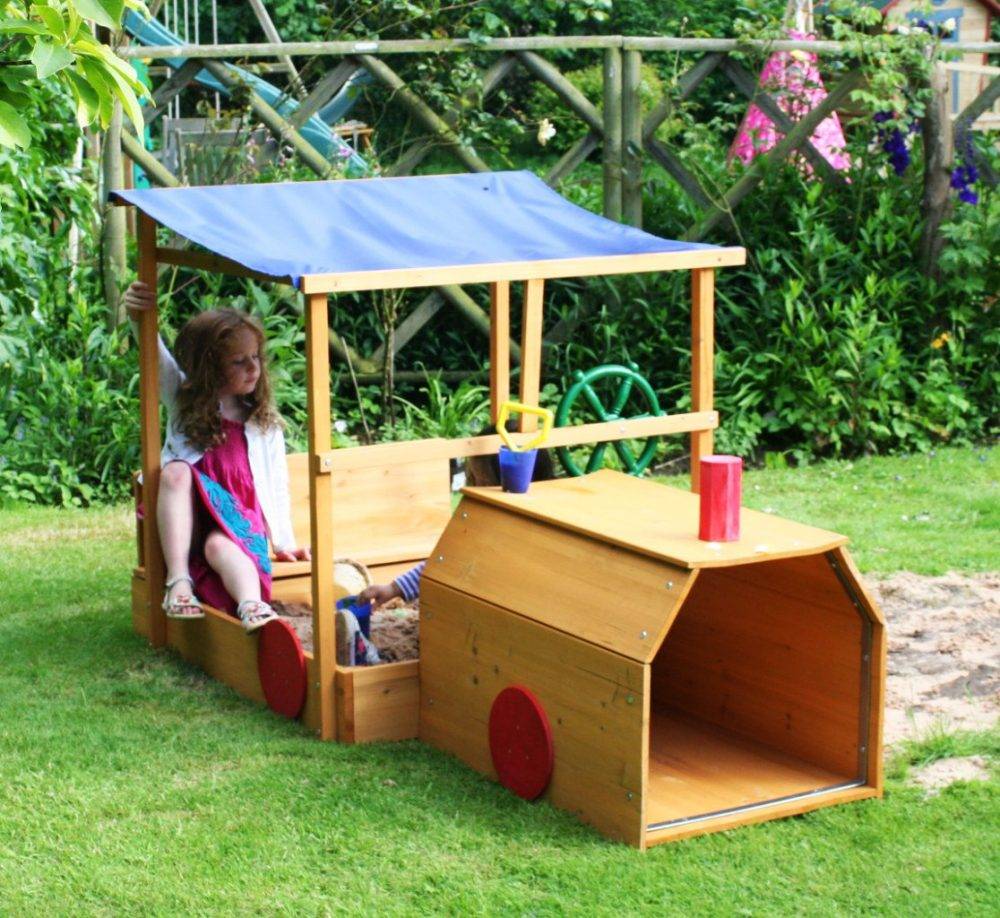После того как вся детская песочница будет собрана, ее нужно покрасить в яркие цвета. Затем пришло время устанавливать мелкие детали: руль, скамейку для водителя, оформлять фары и т. д.