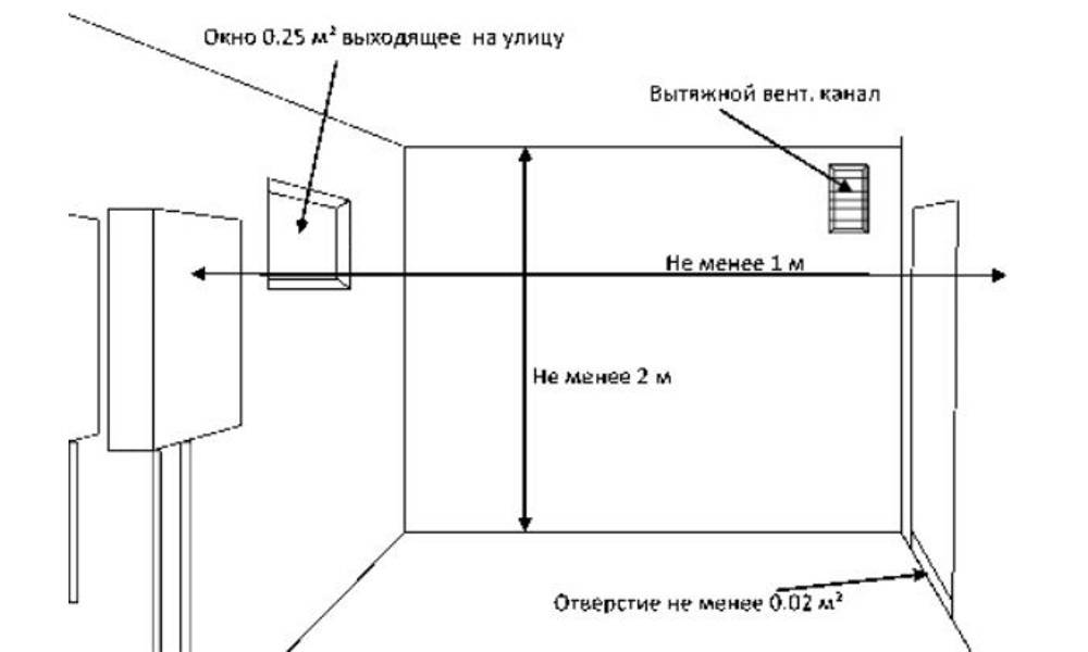 - Такие же ограничения СНиП накладывает на другие отдельные помещения, где планируется поставить газоиспользующее оборудование мощностью до 60 кВт.