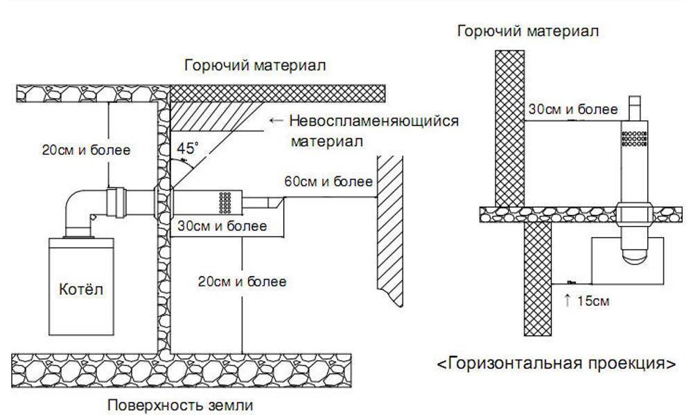 - Стена, на которой устанавливается котел, должна быть сделана из негорючих материалов. Дополнительно может монтироваться защитный противопожарный экран.