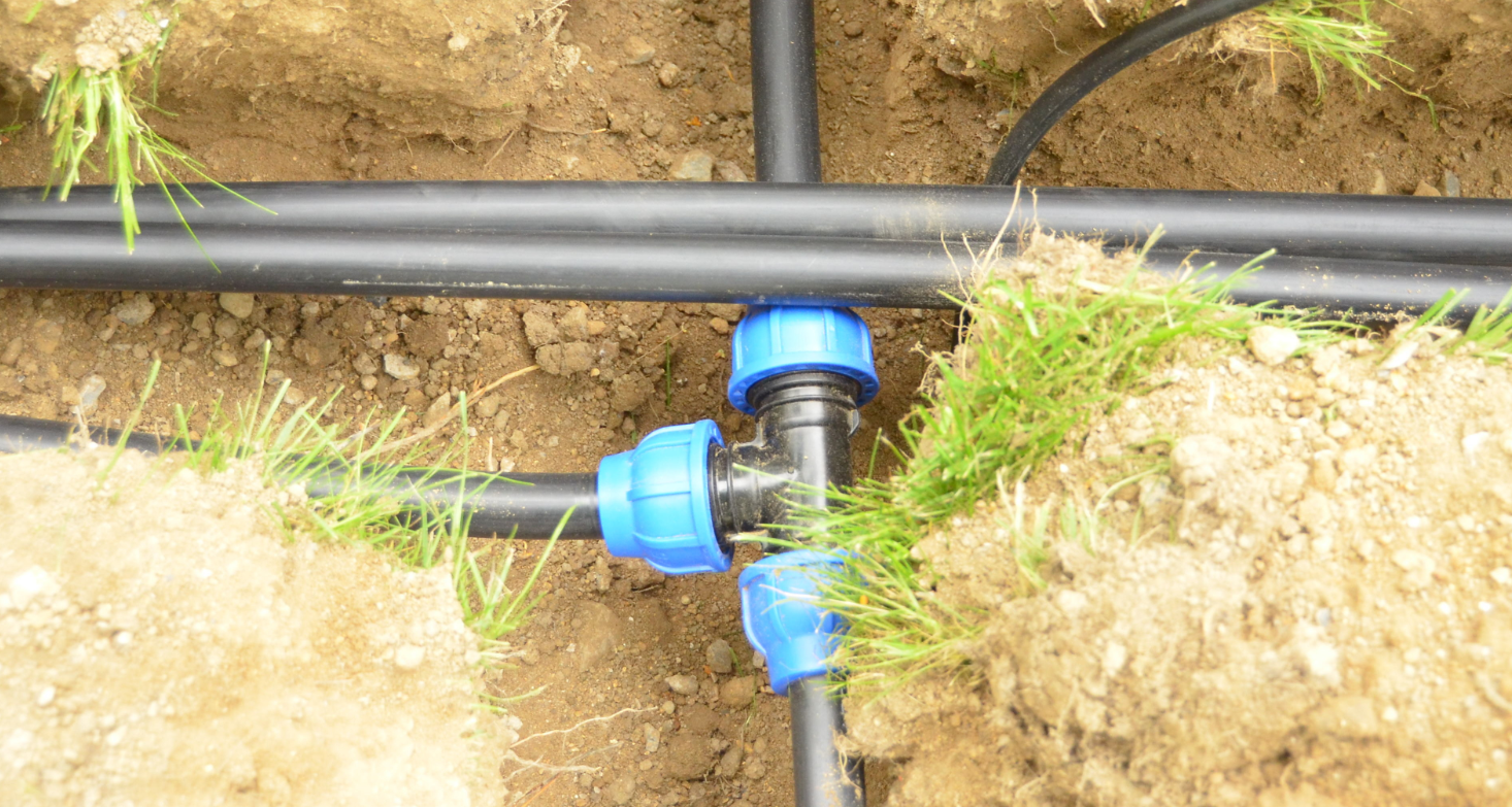 Для этого роется траншея, после чего на дно засыпается гравий вместе с песком. Потом прокладываются сами полиэтиленовые трубы (ПНД), диаметром 32 мм. Этот размер очень оптимален, поскольку на него можно легко найти необходимые детали.