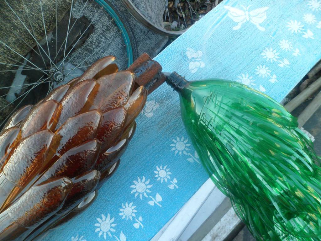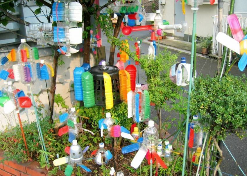 Бутылки из пластика в садовом декоре