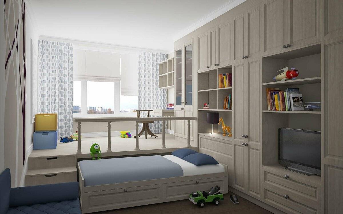 Также хороший способ обустроить детскую комнату — поставить туда кровать на высоком подиуме со множеством выдвижных ящиков, куда ребенок сможет положить все что угодно: начиная от игрушек и заканчивая школьными принадлежностями. В комнате будут обеспечены и порядок, и достаточное место для игр. Если выбор остановился на создании высокого подиума, туда же можно вмонтировать и небольшой встроенный стол с выдвижным механизмом, что будет и практично, и очень удобно.