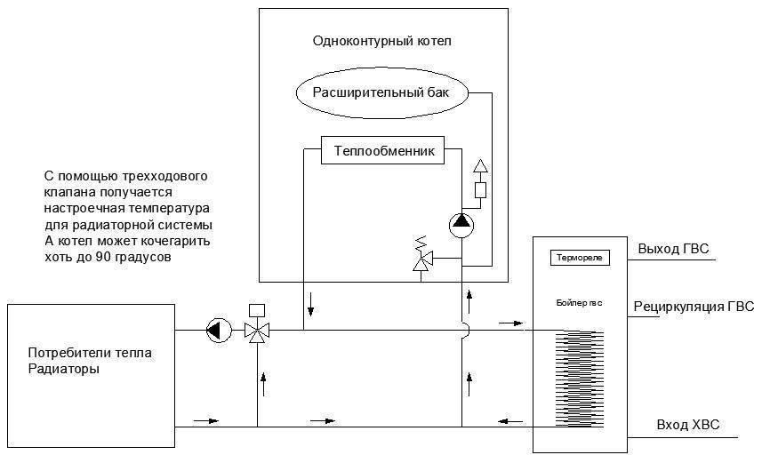 Подписывайтесь на получение новых статей. Для этого мы можем перекрыть контур отопления и оставить работать только бойлер косвенного нагрева. Нагрузка токовая, как правило, не менее 10 А. Такие устройства подключаются к отопительным системам, в которых используются котлы, не оснащенные автоматикой. Для подключения придется систему отопления выполнить в два контура, первый — для генерации тепла в доме, второй, имеющий больший приоритет, — для бойлера то есть если в агрегате температура воды упадет, то трехходовый клапан переключит горячую воду в контур отопления, пока не вернется нужная температура.