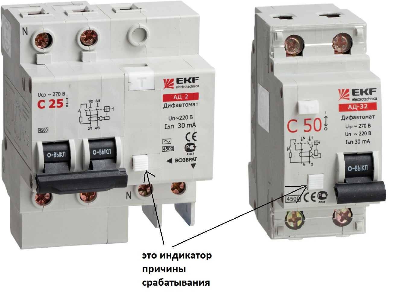 Чтобы решить хотя бы вторую проблему, производители стали делать флажки, которые показывают причину сработки дифавтомата. В некоторых моделях это небольшая площадка, по положению которой определяется причина отключения.