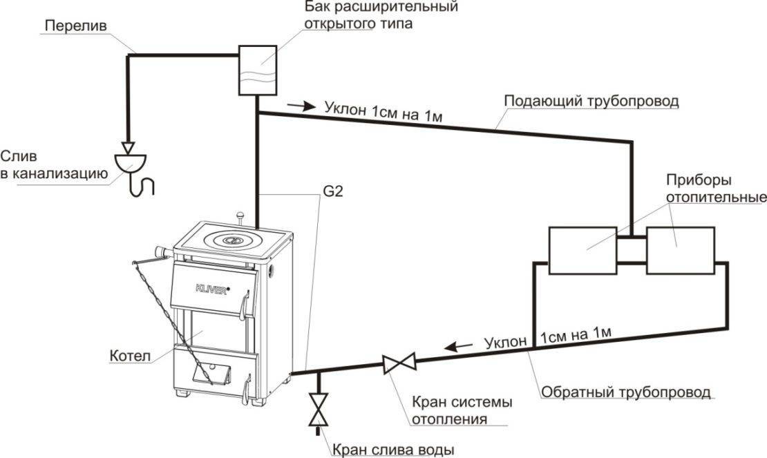 - Простая схема открытой системы отопления обеспечивает простоту монтажа.