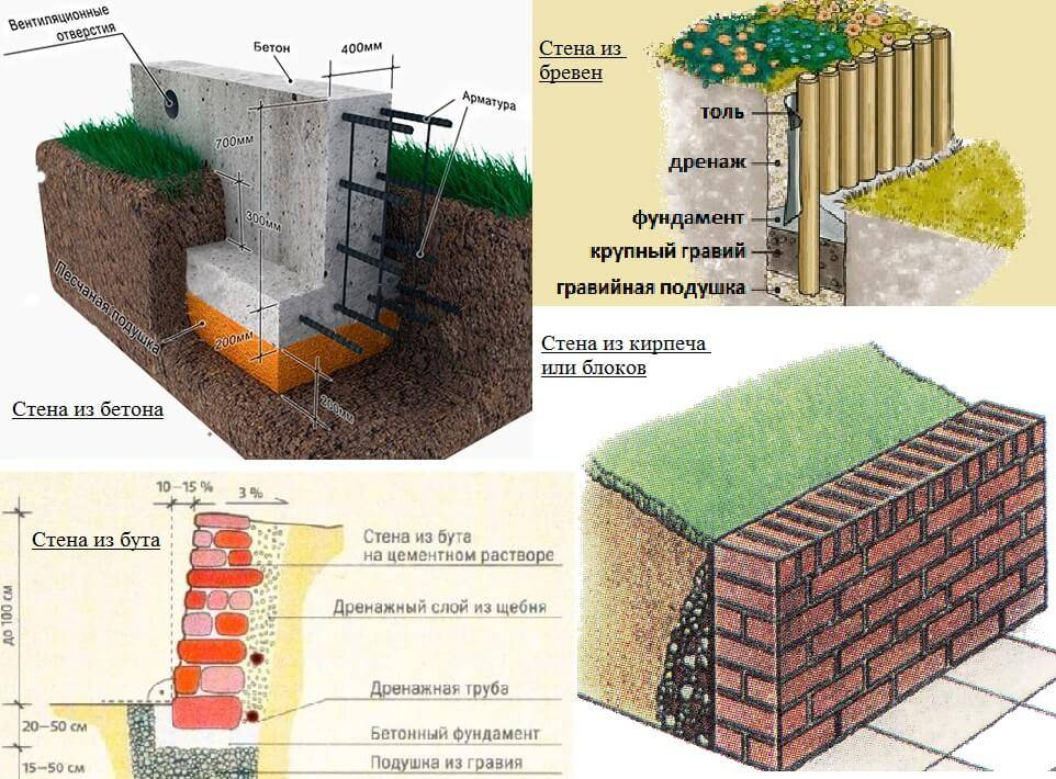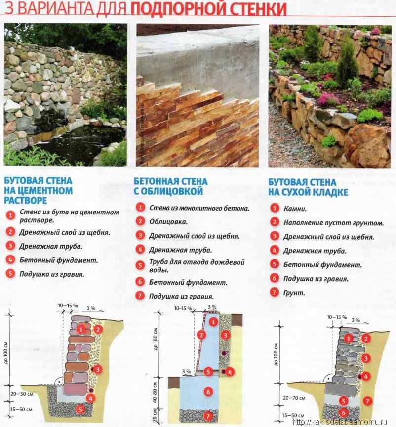 Такие стены бывают декоративные и укрепительные. В зависимости от сложности поставленной задачи стена может быть: