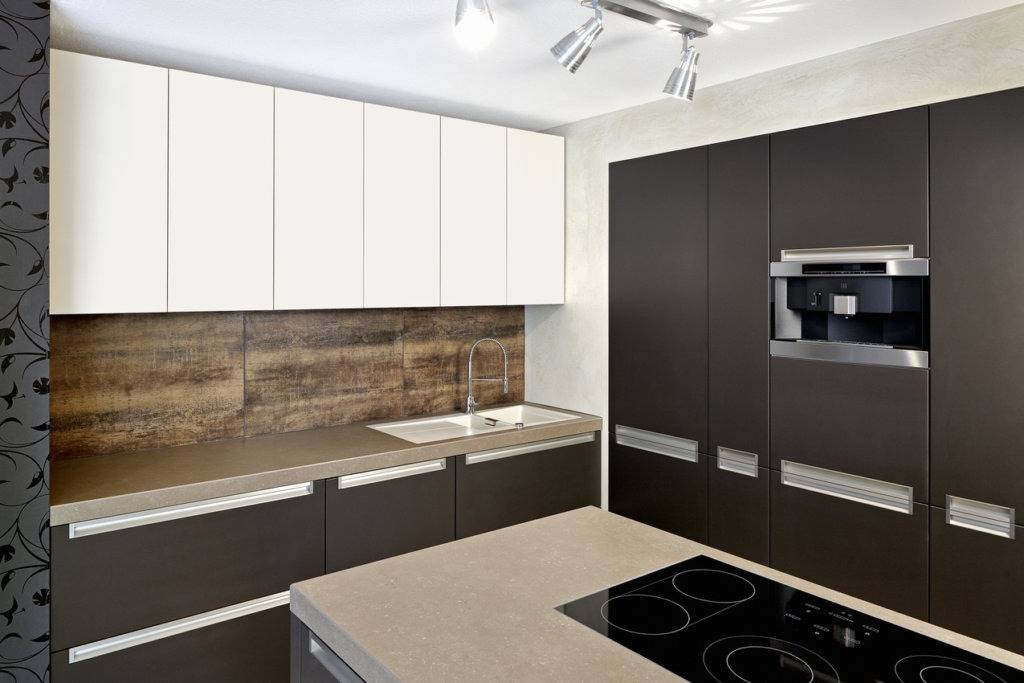 Наилучшим возможным вариантом размещения светильников в рабочей зоне кухни является нижняя сторона висячих шкафчиков. Подобное расположение позволяет качественно освещать рабочую зону, при этом можно выбрать как встроенные галогеновые лампы, так и светодиодные ленты, которые обеспечивают интенсивное направленное освещение и при этом расходуют минимум электроэнергии.