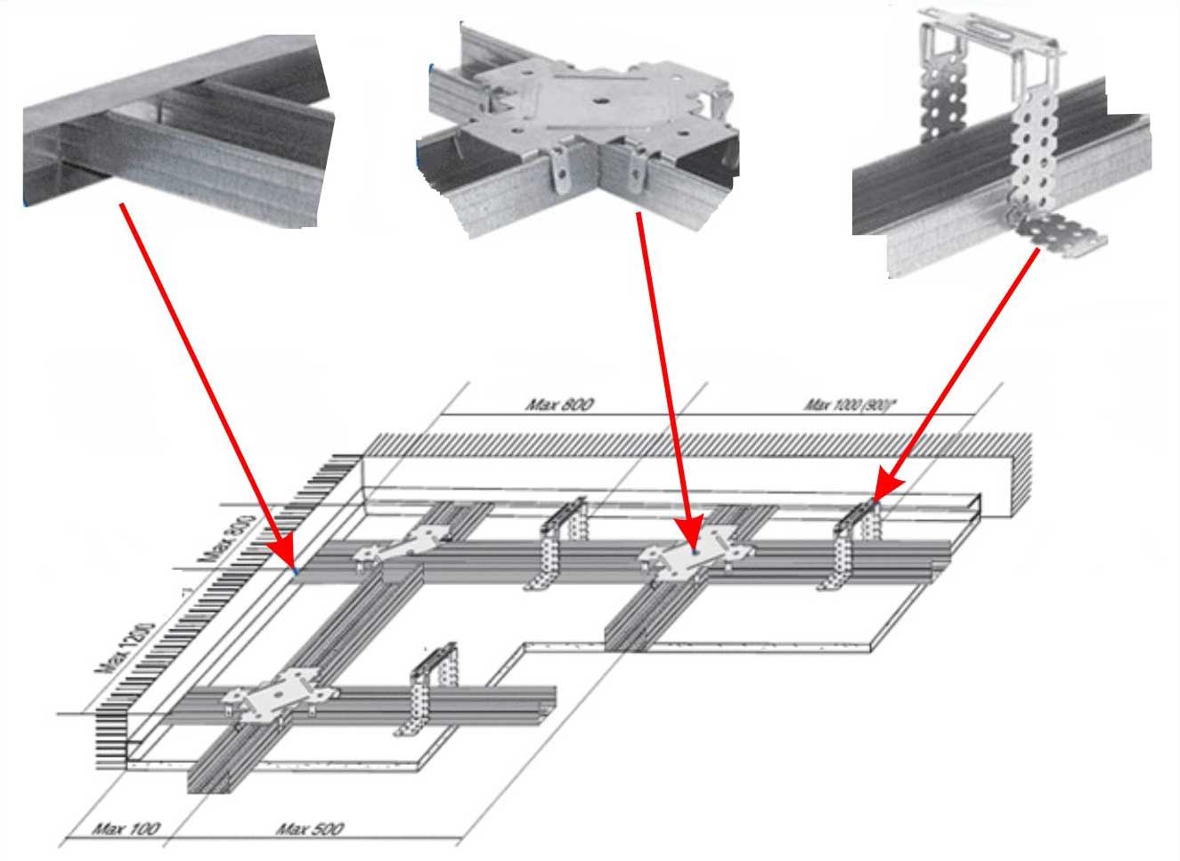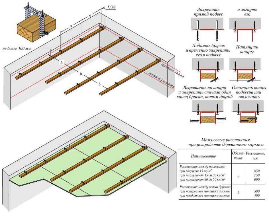 Схема монтажа гипсокартона на деревянный каркас подвесного потолка