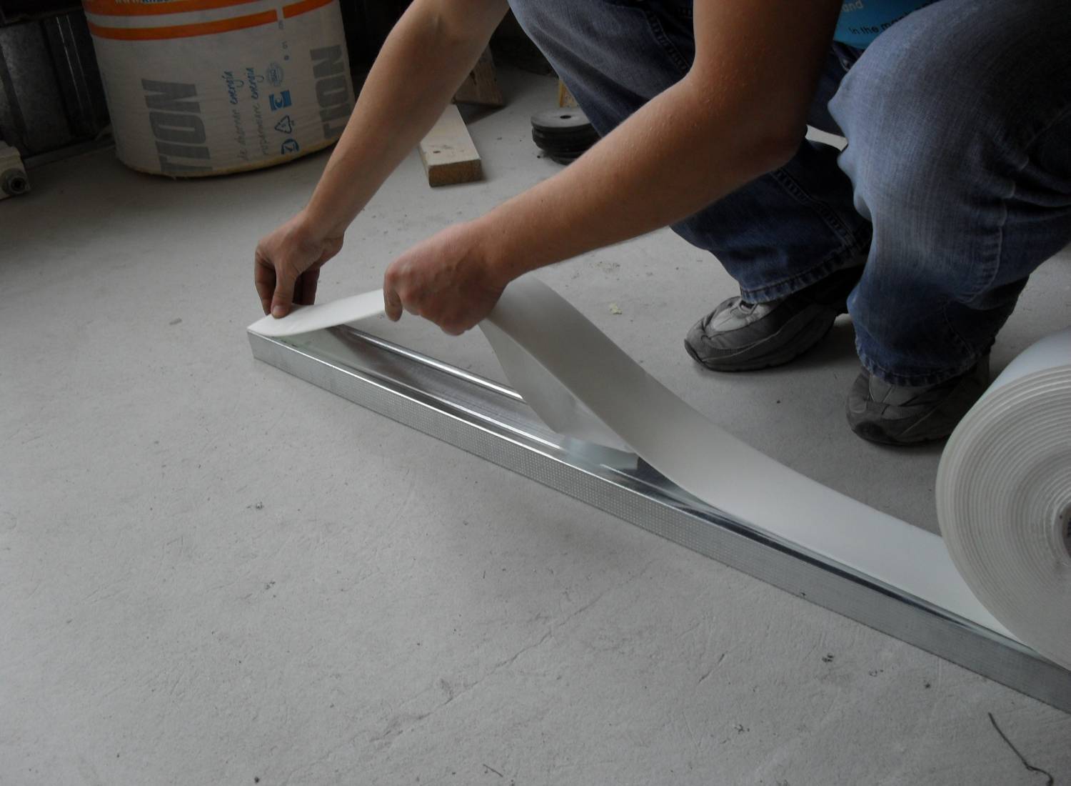 - перед непосредственным монтажом необходимо наклеить уплотнительную ленту на подвесы;