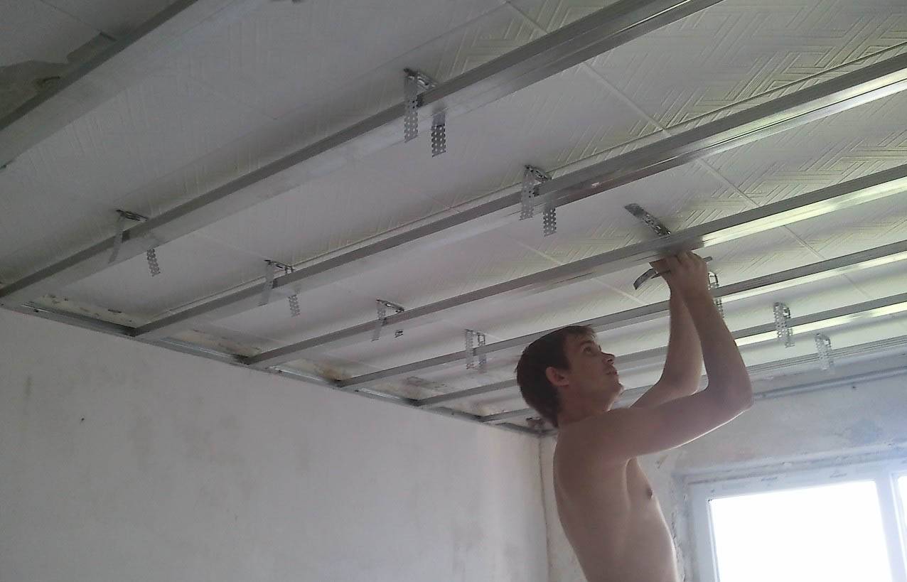 А их общая длина должна быть на 1-2 см короче длины потолка. Установку каждого профиля начинайте с углов – прикручивайте его к подвесам и направляющим при помощи саморезов. Затем закрепляйте середину.