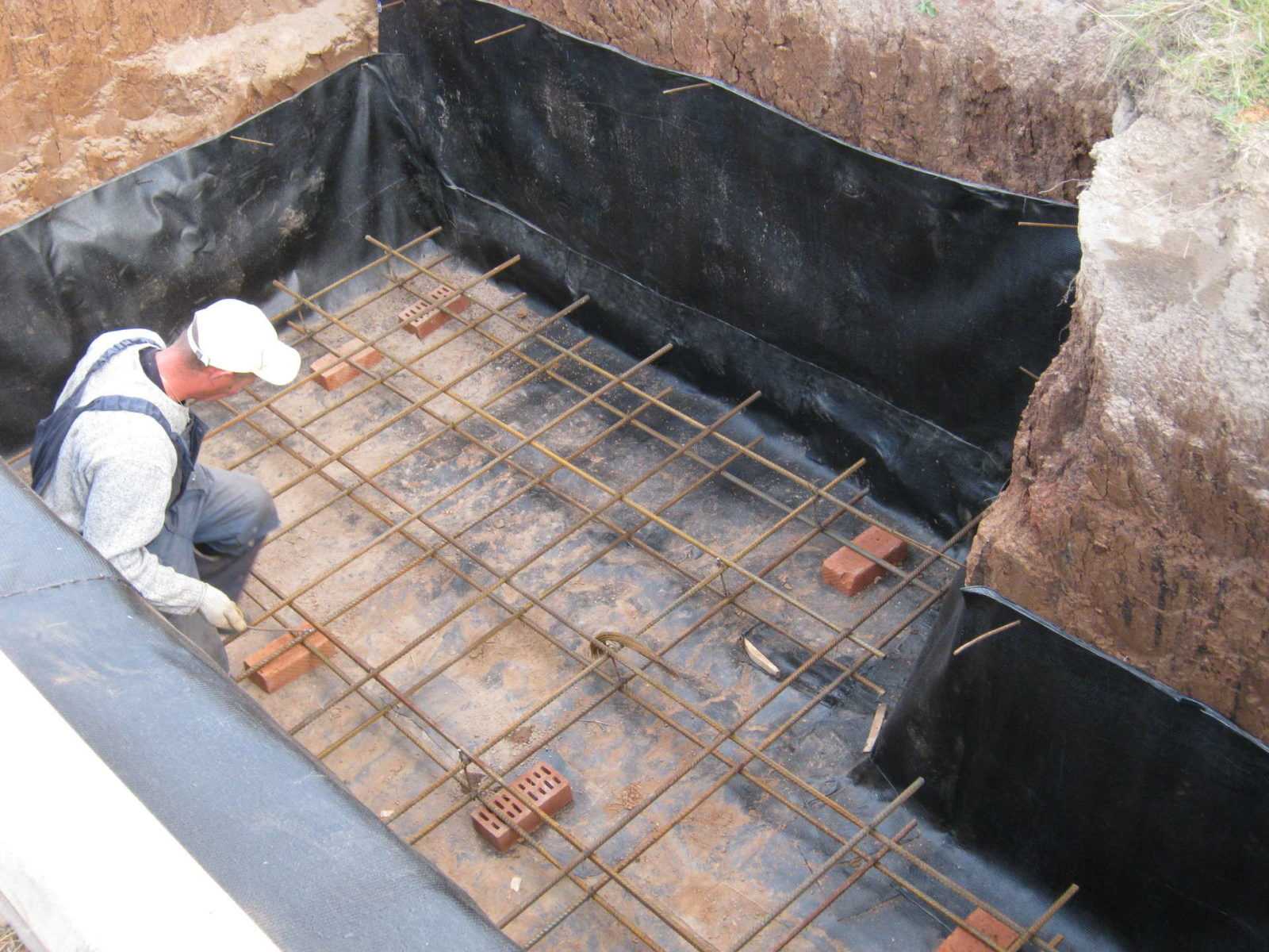 - Конструкции защищают гидроизоляцией с наружной и внутренней стороны, приклеивая ее в 2 слоя.