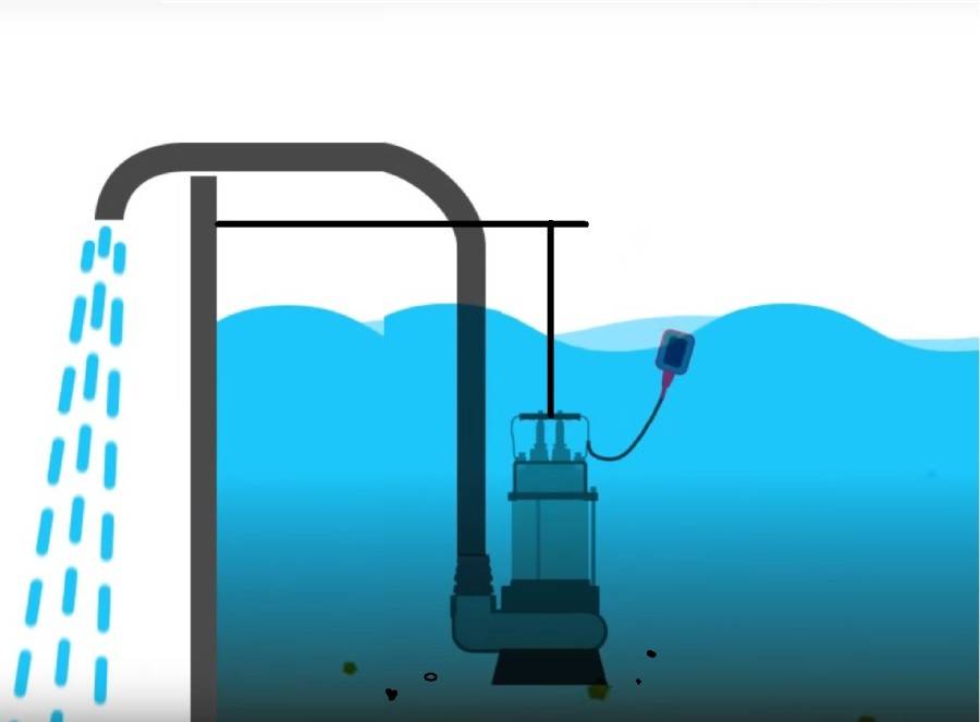 Установка дренажного насоса на дно неглубокого водоёма. Глубина погружения