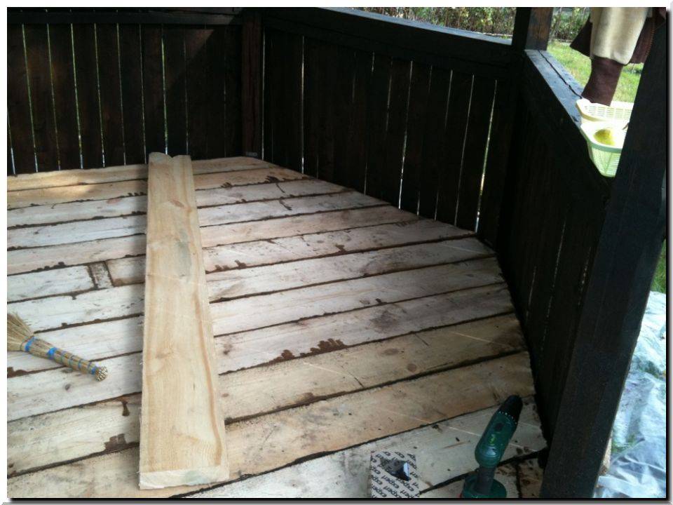 Все лаги должны располагаться в одной горизонтальной плоскости. Чтобы упростить процесс их монтажа, можно натянуть нитки, которые будут служить маяками. - Далее поверх лаг настилаются доски толщиной не мене 2,5 см. Данной толщины достаточно, чтоб пол получился надежным и прочным.