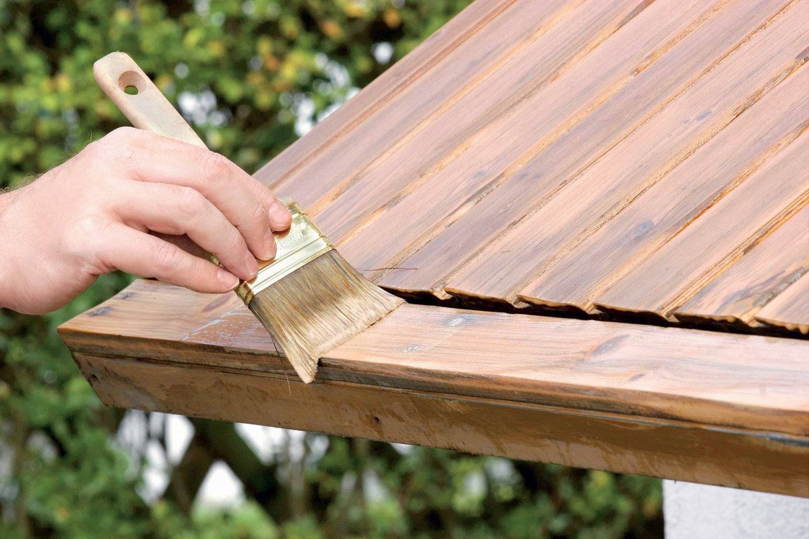 - Сочетаемость с лаком или краской, которыми будет покрашено сооружение. Средство не должно вступать в химический конфликт с последующей декоративной отделкой и, если планируется покрытие бесцветным лаком, не изменять цвет древесины.