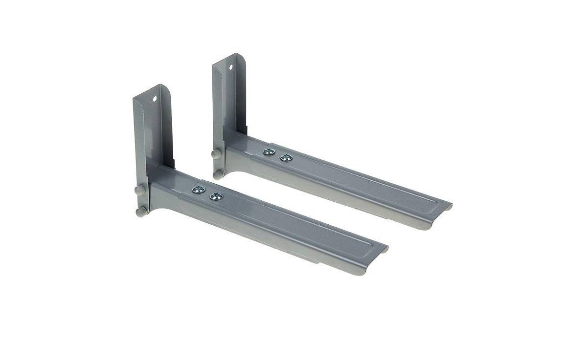 Кронштейны — металлические крепления на стенку, на которые ставится микроволновка. Выпускаются разных размеров, у некоторых — размер регулируется.