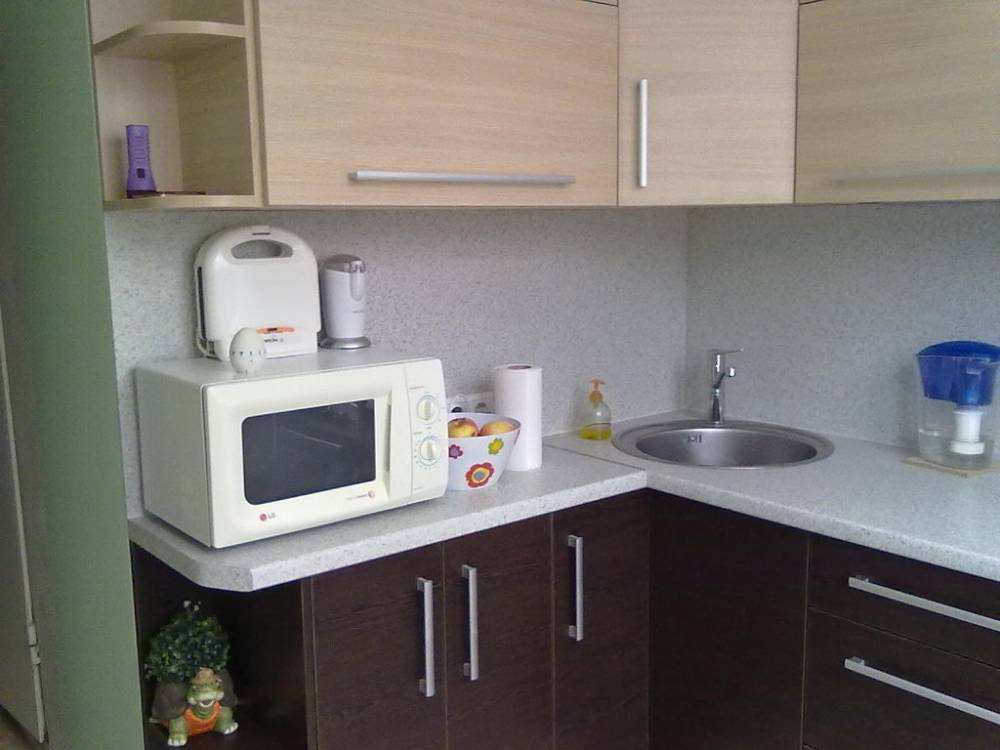 Расширит возможности кухни микроволновый прибор, расположенный вдоль стены.