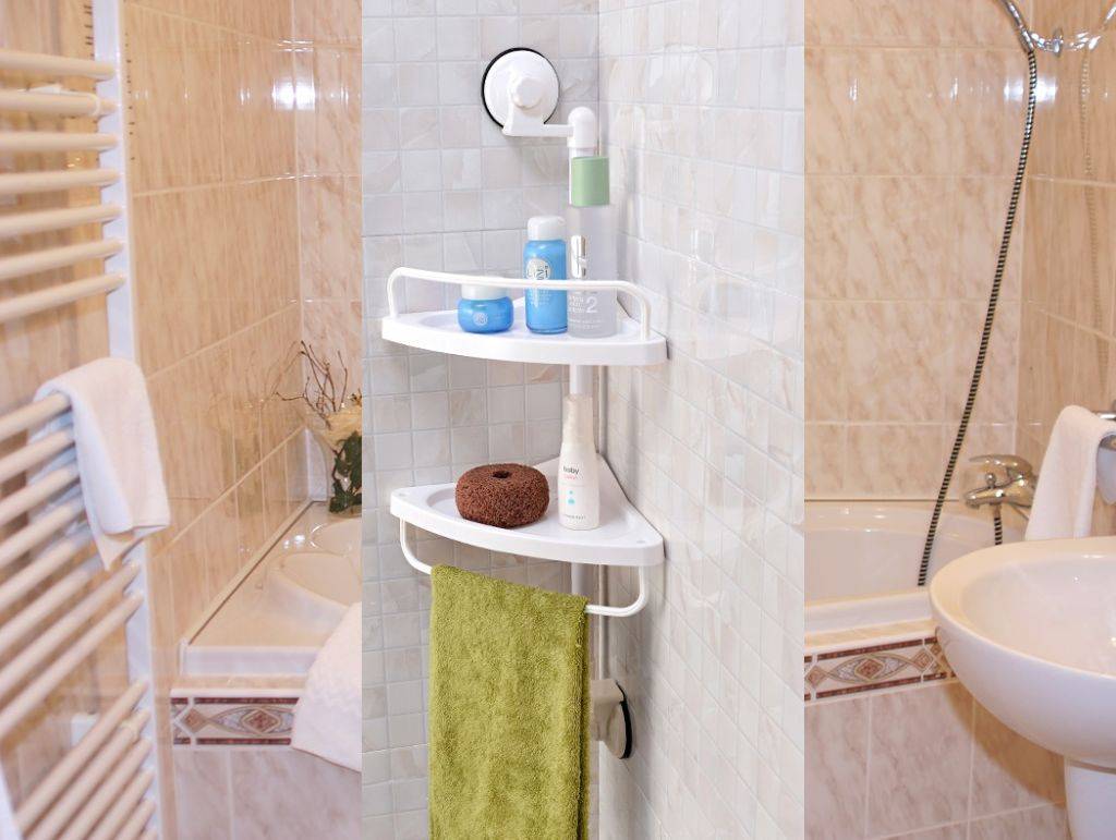 Есть неплохая и бюджетная альтернатива дорогостоящим конструкциям – полочки на присосках. Они подойдут для любого помещения, могут быть разными по форме. Они легко монтируются и демонтируются, снимаются для ухода (мытья) и переносятся в другой угол комнаты.