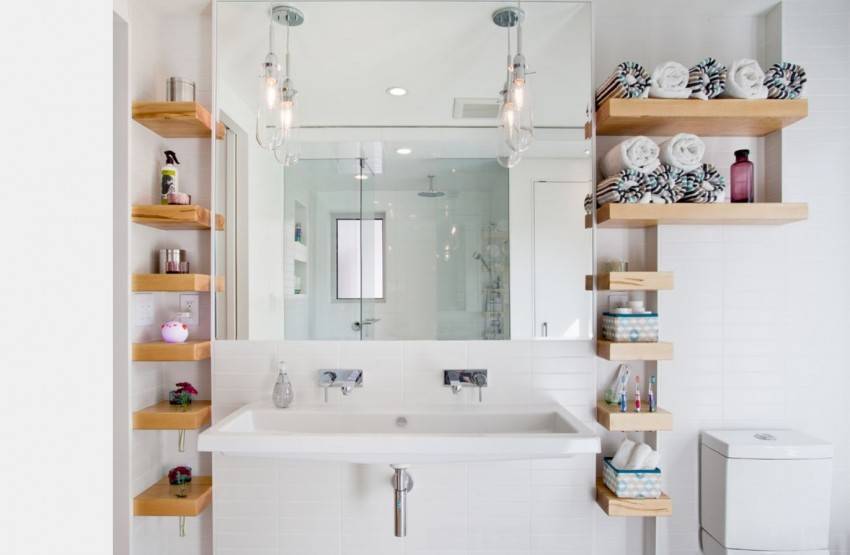 Конечно, различные аксессуары можно посмотреть в любом мебельном каталоге, но в этой подборке собраны фото полок для ванной комнаты, которые реально сделать своими руками.