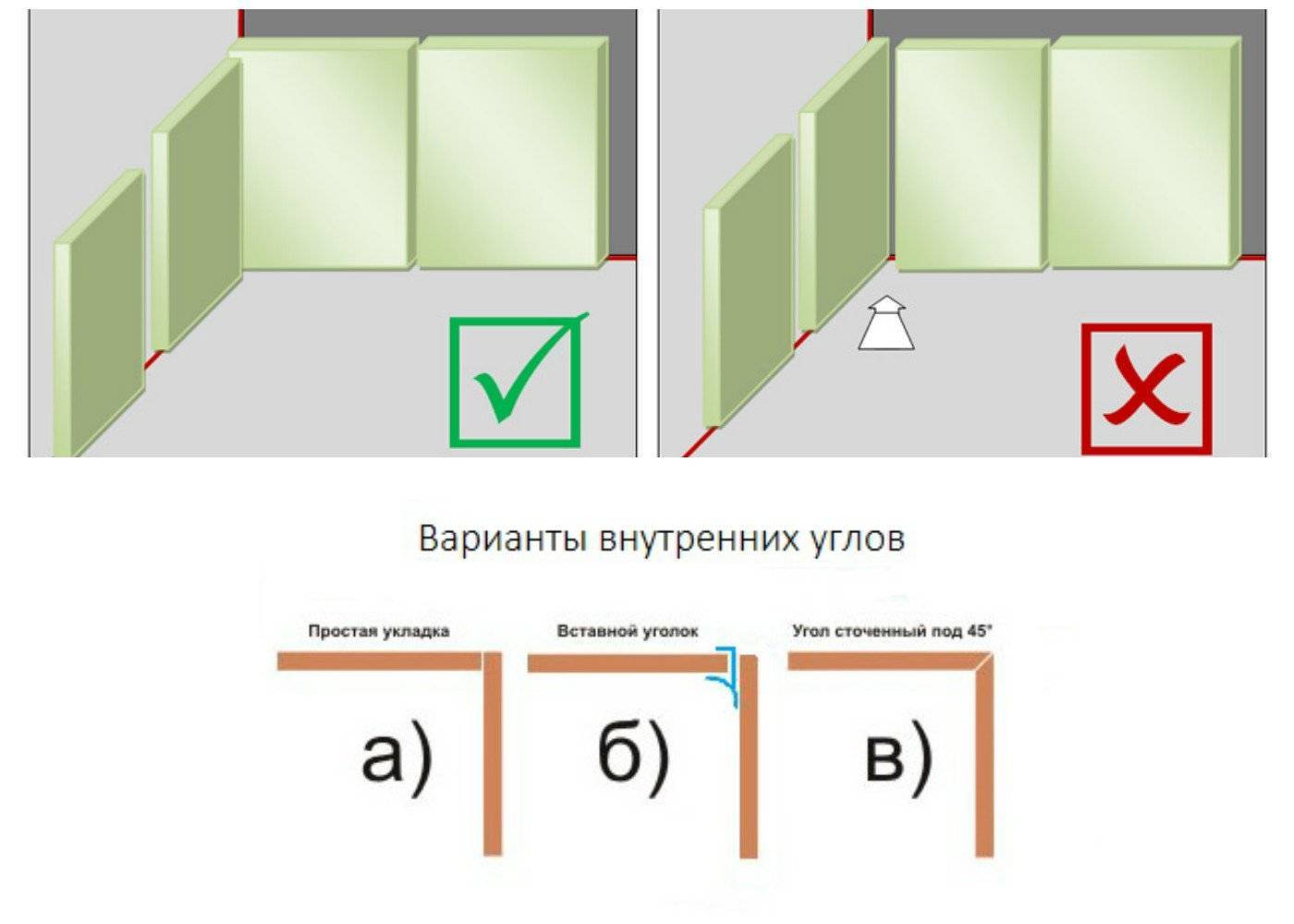 Существуют различные способы стыковки плитки в углах.
