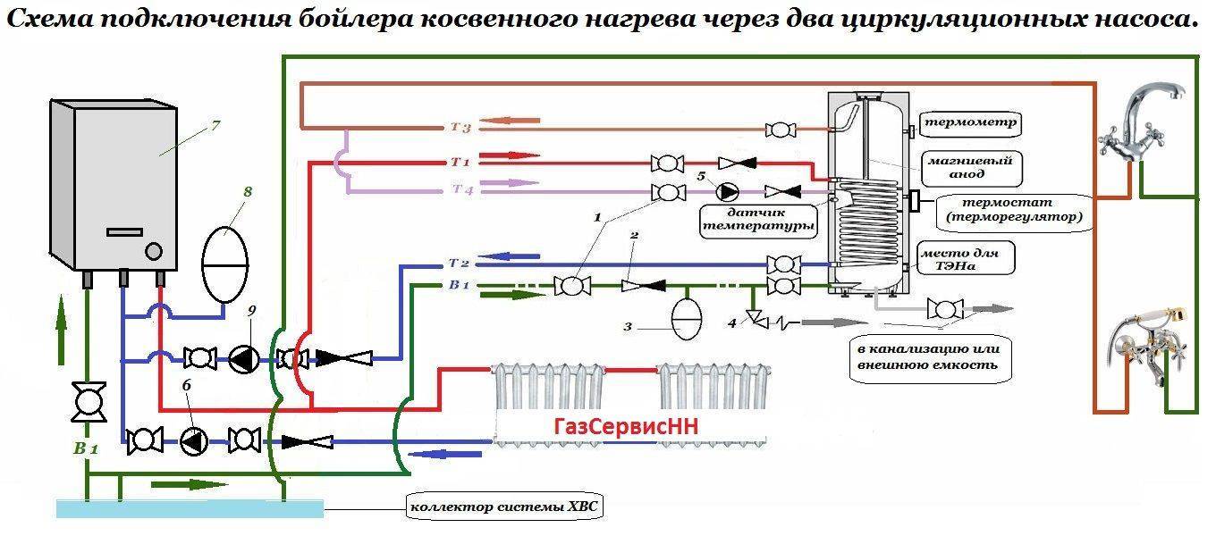 Схемы подключения бойлера к котлу