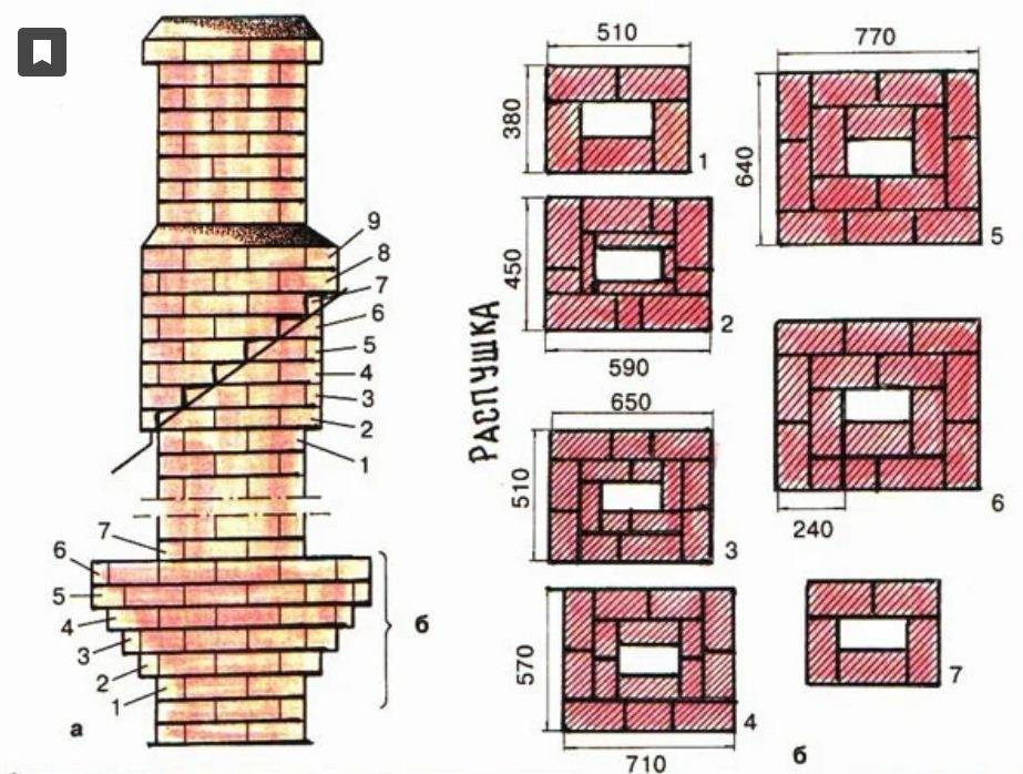 Толщина стенок кирпичного дымохода в области его прохождения через перекрытия, кровлю или стены (перегородки) должна быть больше, чем по основной высоте. Это утолщение и носит название разделки.