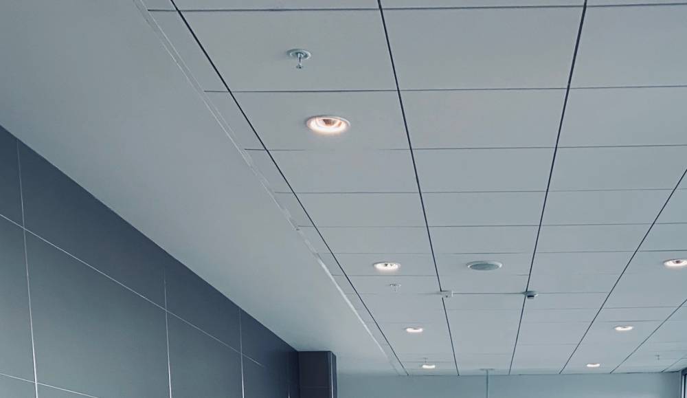 Модульный и реечный потолок. Вместо гипсокартона можно применять готовые облицовочные листы. Например, потолочную подвесную плитку (модули) или, по-другому говоря, кассетный и ячеистый потолок. Существенной разницы в конструкции гипсокартонного и плиточного потолка нет. Однако гипсокартону необходима финишная отделка, в то время как поверхность готовых модулей не требует дополнительного облагораживания.