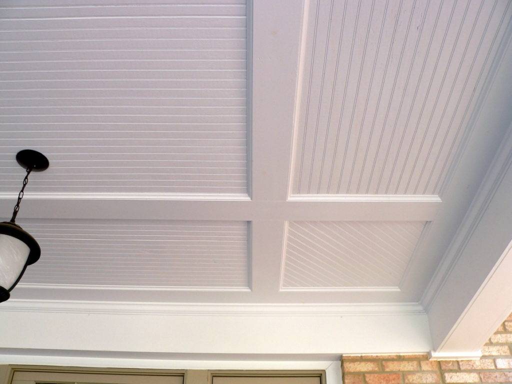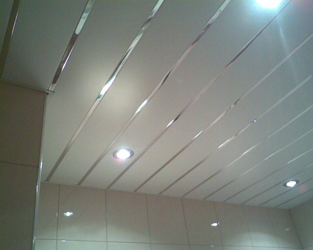 Каркас можно обшить и стандартными пластиковыми панелями (пластиковый потолок). Потолок при этом, как правило, выглядит сплошным и гладким. Стыки панелей заметны лишь под некоторыми углами обзора. Но есть конструкции с сохранением «планочной структуры». В пластиковый потолок легко монтировать встраиваемые светильники.