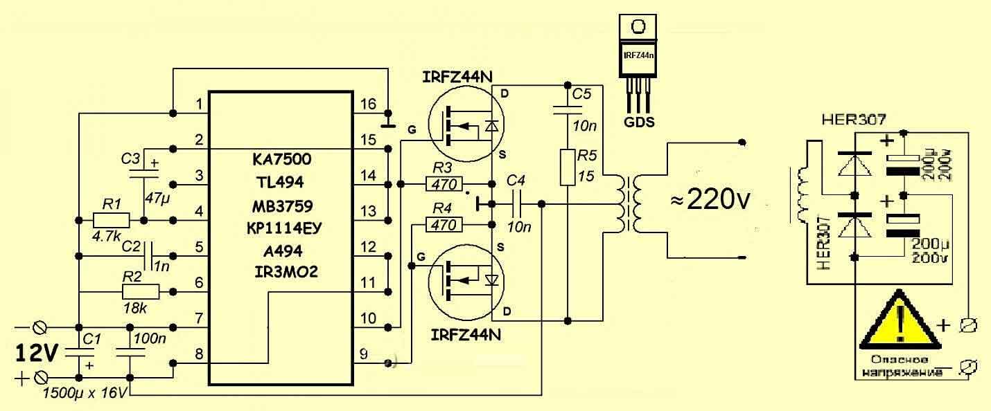 Схема преобразователя напряжения 12/220 В