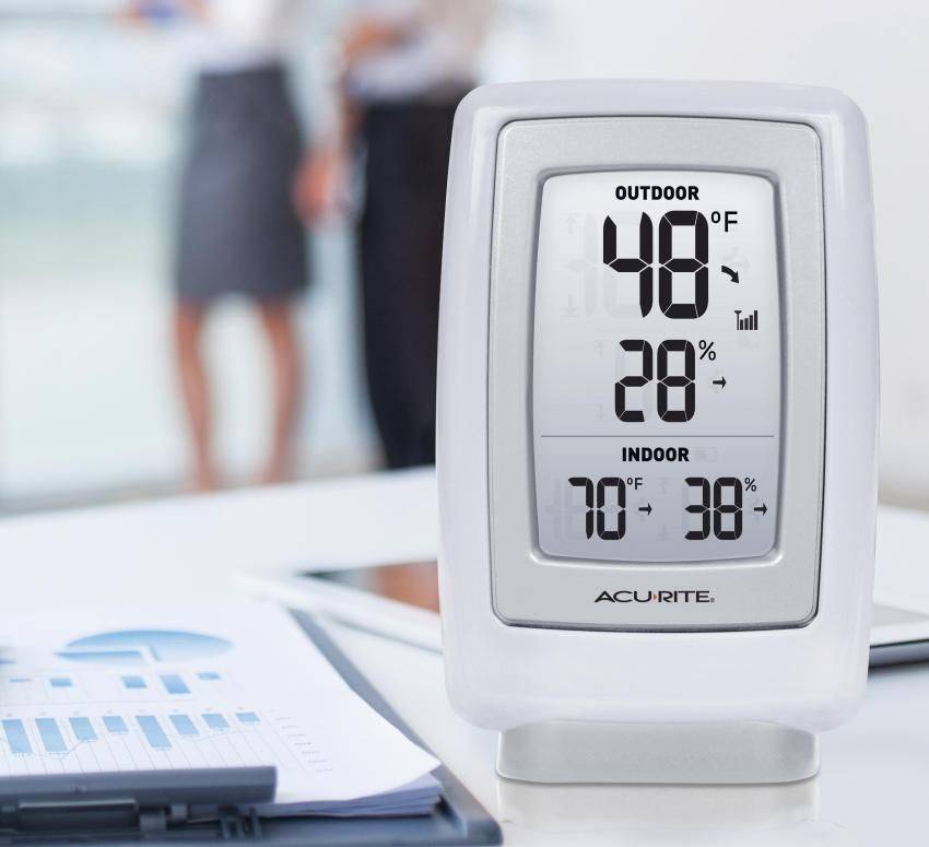 Электронный гигрометр, показывающий влажность воздуха внутри и снаружи помещения