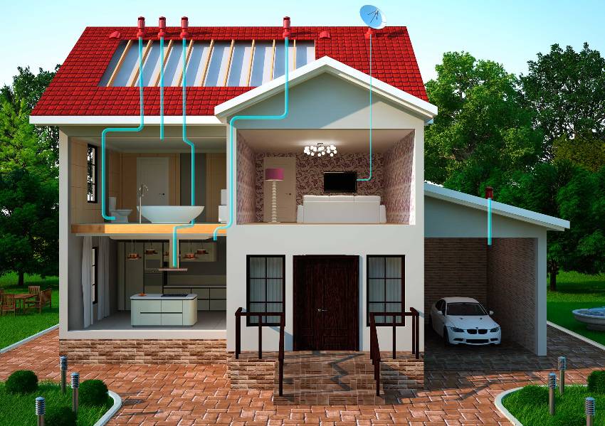Пример обустройства искусственной вентиляции в двухэтажном коттедже