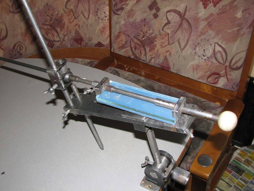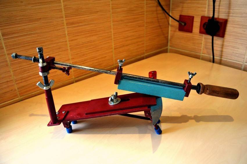 Самостоятельно сделать станок для заточки ножей вполне можно в домашних условиях. Основным требованием, при создании самодельного станка для заточки, является жесткое закрепление затачиваемого лезвия и абразивного элемента. Благодаря этому достигается главное требование ко всей процедуре: создание и сохранение угла заточки.