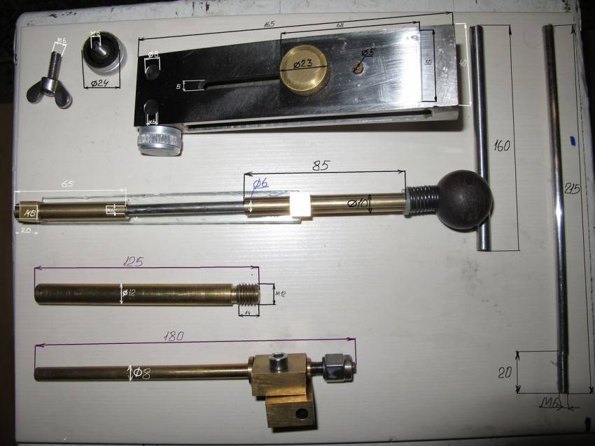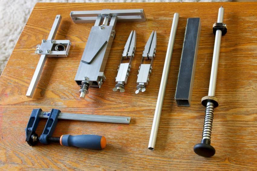Самая сложная часть сборки этого приспособления заключается в подготовке регулирующего устройства, которое будет задавать угол заточки ножа. Для этого понадобится: