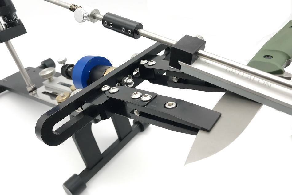 Станки для затачивания ножей с фиксирующимися лезвиями привлекут к себе внимание тех людей, которые хотят наточить нож не только качественно, но и быстро. Конструкция, жёстко фиксирующая лезвие ножа относительно движущегося под установленным углом точильного камня, позволяет точно выставить угол наклона. Для создания подобного самодельного станка своими руками понадобятся: