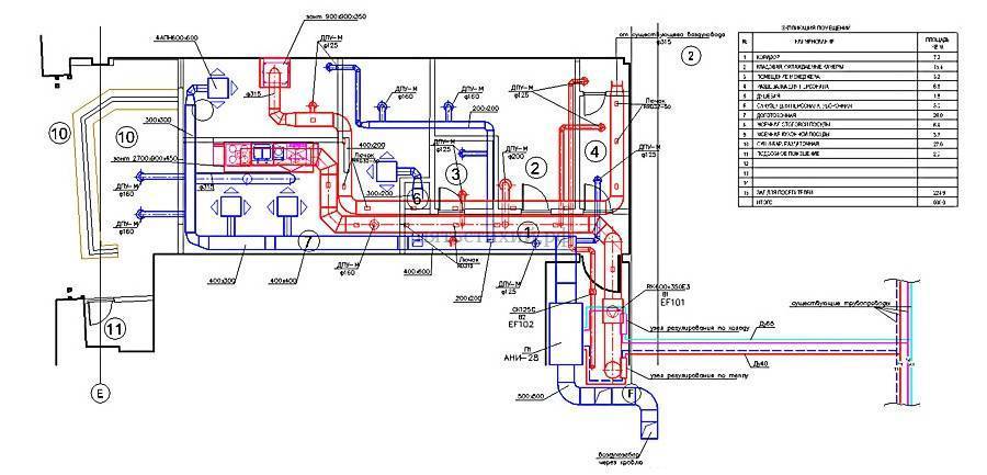 В стадии проектирования необходимо учитывать объем воздухообмена, за счет чего подбираются сечения вентиляционных труб. Это важный момент, от которого зависит эффективность работы всей системы. Обязательно учитывается производительность вентиляторов и места их установки.