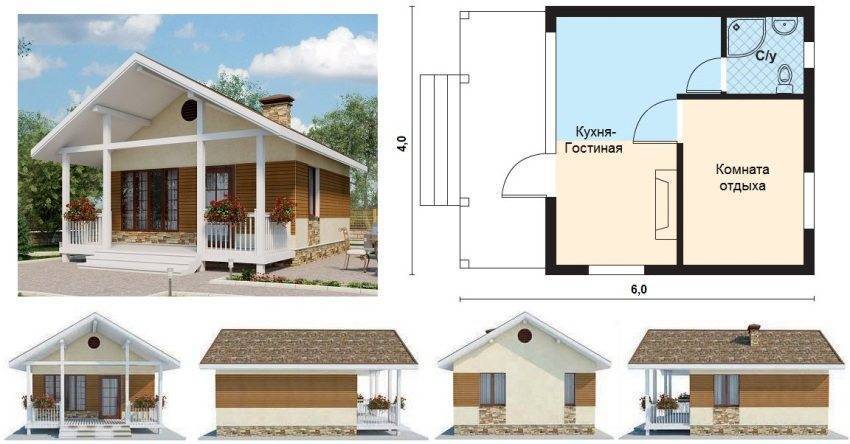 - Универсальные домики для дачи с небольшой площадью, которые могут быть посещаемы в любое время года.