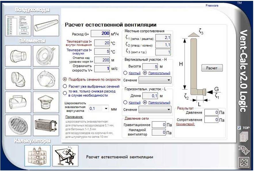 Независимо от выбранного типа вентиляционной системы, данная утилита одинаково хорошо справляется с необходимыми расчетами. Функционал программы позволяет: