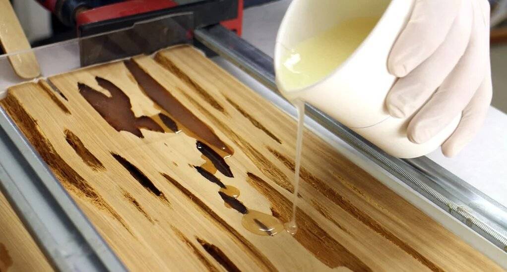 | С основой из натуральной древесины или ДСП | ![]() | В этом варианте смола является защитой основной поверхности от влаги и механических повреждений. |