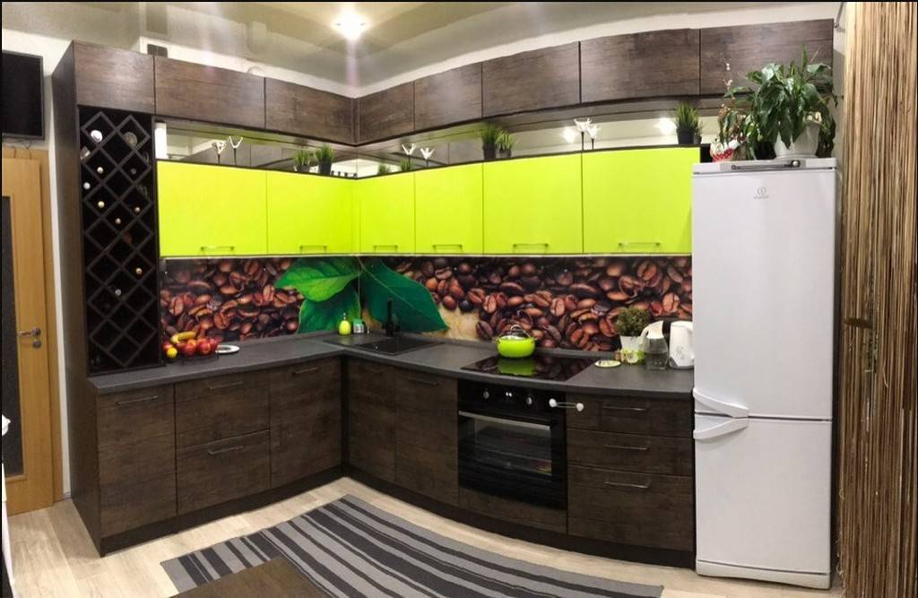 Не стоит думать, будто модерн для кухонных гарнитур сводится к скучной однотонной поверхности и строгой геометрии. Вовсе нет — поверхность можно оформить очень занимательно и необычно. Например, использовать фотопечать.